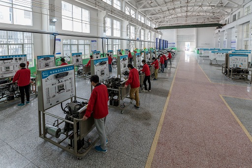 员工们正在进行汽车发动机实训。