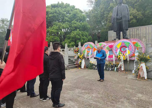 进入方志敏烈士陵园后,全体师生来到方志敏烈士铜像面前瞻仰默哀。员工代表为烈士献上花圈,大家在方志敏烈士墓前行三鞠躬礼,集体默哀三分钟,默哀完毕后,朱三武讲话。朱三武表示,今年是中国共产党成立100周年,也是“十四五”的开局之年,希望分院师生既要学党史、悟思想,从中汲取宝贵的经验和力量,更要办实事、开新局,以昂扬姿态奋力开启全面建设社会主义现代化国家新征程。