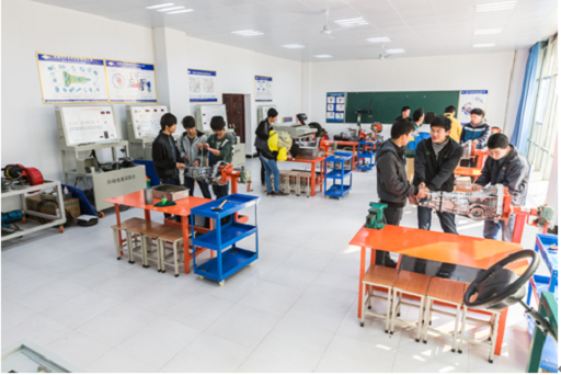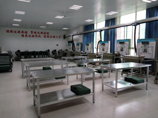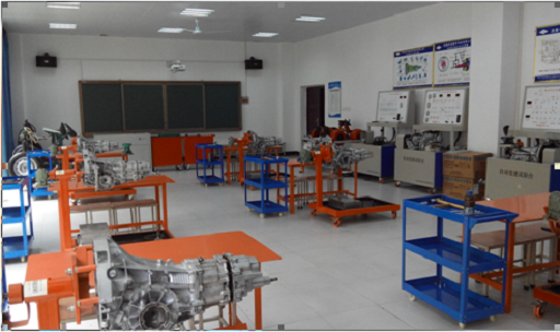 汽车实训中心下辖:整车实训车间、发动机机械实训室、底盘机械实训室、发动机电控实训室;汽车电器实训室、汽车空调实训室、汽车信息与网络实训室、汽车虚拟仿真实训室等,各类设备总价值约1680万元。