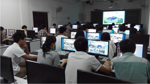 于2010年8月与上海景格汽车科技有限公司合作共同筹建,实训室配备服务器、教师终端、员工终端共计70个网点,软件系统配备了先进的TS05景格汽车发动机拆装虚拟实训软件、景格TS06汽车维护虚拟实训软件、景格ES01汽车网络考试平台、景格AC02汽车检测线软件、景格TS0402汽车故障诊断虚拟实训软件、景格汽车视频资源库MINI操作平台系统,另外还为汽车技术服务与营销专业配备了北京运华软件有限公司的多媒体汽车商务与服务模拟实训教学软件。本实训室主要满足汽车制造与试验技术、汽车技术服务与营销、汽车检测与维修专业的发动机拆装实训、汽车维护与保养虚拟实训,汽车故障诊断实训以及汽车技术服务与营销专业的汽车商务与服务模拟实训。