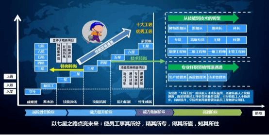 公司开辟了多通道的职业发展路径,开辟了横向和纵向的发展通 道, 为员工职业发展提供了更大的空间; 每一层级都有任职要求及标 准, 实现了员工事其所好, 精其所专,得其所值,知其所往。具体详