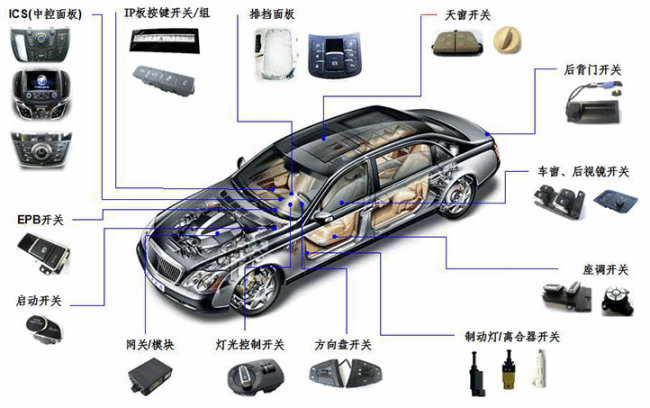 业务覆盖汽车空调控制系统、娱乐控制系统、车身电子控制模块及各类电子电器开关。主要为美国通用、德国大众、德国奥迪、上海通用、一汽大众、上海大众、一汽轿车、上海汽车、长安汽车、奇瑞汽车、长城汽车等国内外著名整车制造商提供优质产品与服务。荣获各整车制造商优秀质