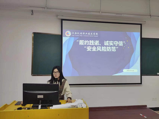 在车辆1班的主题班会上,黄伟芳同学带领大家观看了诚信的视频,让同学们理解到什么是诚实守信以及诚实守信对个人和社会的重要意义。在车辆2班的班会上,赖鑫同学通过“桥下之盟”小故事让同学们知道了诚信的重要性,通过展示“诚信格言”让同学们明白诚信是优秀的道德品质,也是非常宝贵的财富。在城轨5、6班主题班会上,鲁超凡同学给大家讲述了诚信小故事《韩信送金》,引起了同学们对不诚信行为的重视,大家表示将争做一个守诚信的公民。