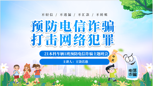 有的班级以“预防电信诈骗,打击网络犯罪”为主题召开了班会,引用真实案例帮助同学们认识刷单、裸聊、假冒客服等电信诈骗形式;有的班级分享了虚假信息类、警告通报类、情感爱心类、收益回报类这四类常见骗术类型,帮助同学们提高分辨能力;有的班级总结出“不要贪、不要怕、不要信”的“三不要”防骗口诀;有的班级提醒同学们不要泄露个人相关信息,特别是银行卡、QQ和微信账号密码;有的班级在提醒同学们仔细甄别诈骗信息的同时,强调了一旦诈骗发生,要保留好证据,及时联系公司保卫处或拨打110报警求助。