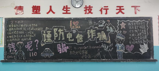 公司各班级在开展主题班会的同时,还以“谨防电信诈骗”为主题绘制了班级黑板报,向同学们普及了电话诈骗的套路和一些防诈骗的实用小技巧。