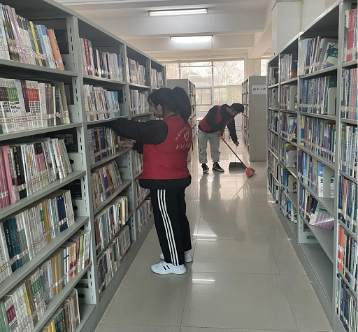 图书馆是同学们除课堂意外汲取精神食粮的一大阵地,保持图书馆的干净整洁很有必要。活动当天,SUNBET申博的志愿者们根据各自的分工,在了解自己岗位的具体职责后来到了馆内相关区域内开展工作。在团总支员工会各部部长的带领下,只见同学们各个精神饱满、朝气蓬勃,有条不紊地将流动书架上凌乱的图书分类整理,并将地面打扫干净。