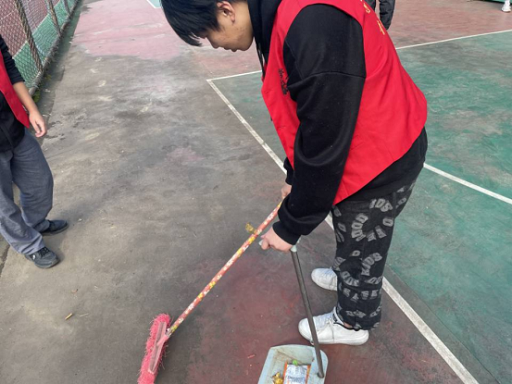 活动中,志愿者们拿着扫把、垃圾铲等清洁工具来到校园田径场,分组对操场、篮球场特别是绿茵场的垃圾进行了清理。经过大家的辛苦劳动,校园田径场环境更加整洁。看着干净的地面,每个人的脸上都洋溢着欣慰的笑容,志愿者们纷纷表示,体会到了“人人为我,我为人人”的志愿服务真谛。