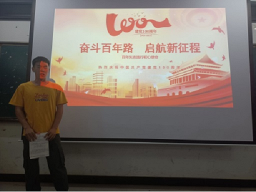 比赛开始前,主持人王银贵同学介绍了比赛规则及评分标准。王银贵说,我们团员青年作为国家先进的青年代表,在实现自身发展目标的同时,必须意识到党史学习是支撑我们前行的强大精神力量。今年是中国共产党成立一百周年,青年兴则国兴,青年强则国强,我们要端正思想,提高思想觉悟水平,发挥团员的带头模范作用,学党史、强信念、永远跟党走。